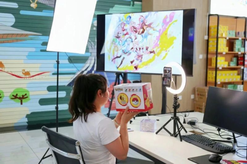 沣东新城自贸功能区公用型保税仓内主播正在介绍产品