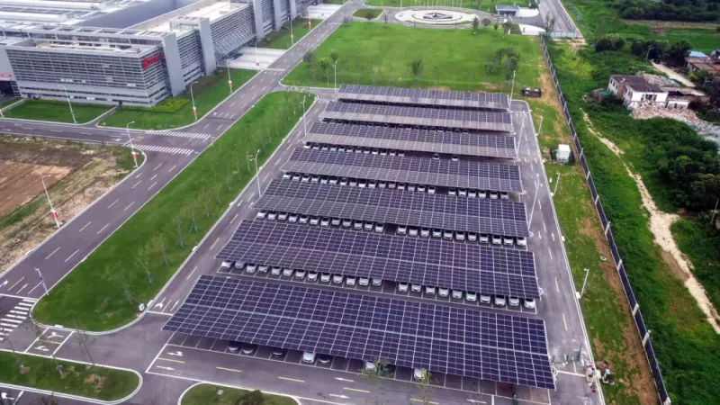 技术创新是该项目的一大亮点。该项目采用三一硅能新能源有限公司自主研发的高效大组件625Wp单晶硅电池及行业内最大型号组串逆变器320kW,确保了系统的高效稳定运行。同时,光伏板与车棚的巧妙结合,不仅实现了能源的最大化利用,还赋予了园区新的视觉美感,成为一道独特的风景线,赢得了广泛赞誉,充分展示了三一硅能新能源有限公司在实用、创新与美观方面的卓越追求。