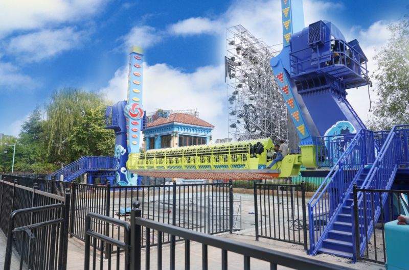 跳跃云霄,设备瞬间弹射高空,自由落体、陡然下坠,带给游客瞬间失重的炫酷体验,开启一段疯狂刺激的旅程。