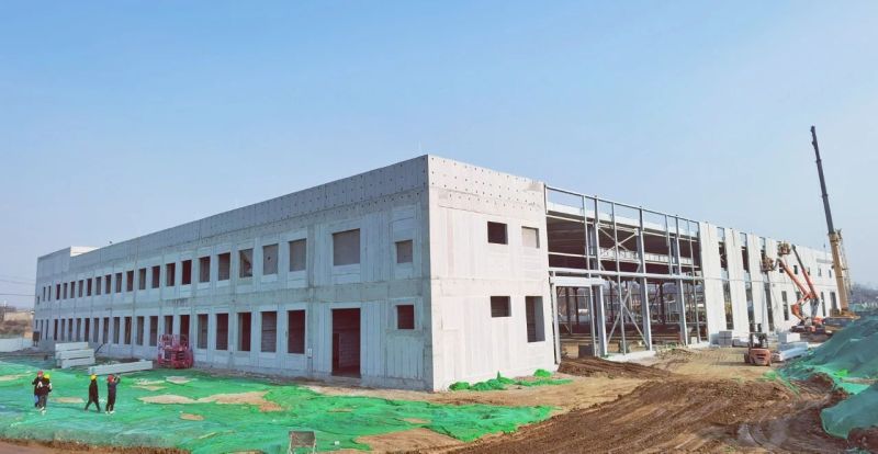 目前,一期F厂房已完成主体钢结构和屋面工程,辅房已完成混凝土框架结构和砌体工程施工,正在进行外立面、水电工程及设备基础施工,即将开始装饰装修、机电安装及其他后续工程施工,明年2月底完成全部建设任务后,将进入设备安装、调试阶段。