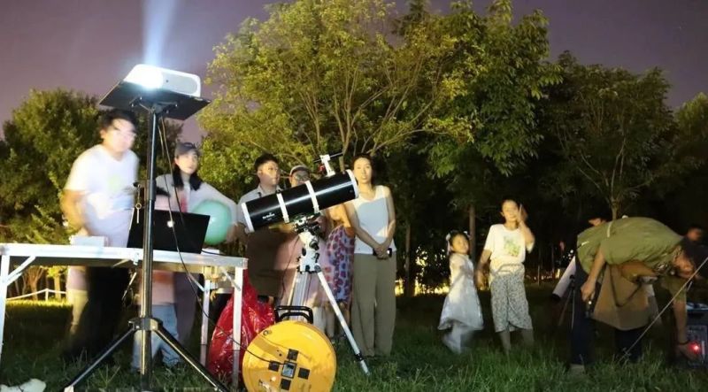 夜幕降临,一堂神秘又浪漫的课程悄然开始。孩子们提出一连串问题:“北斗七星为什么像勺子?”“为什么北极星一直在北方?”望远镜中,月球轮廓清晰浮现,孩子们发出惊呼。白天的营地另有一番野趣,穿着渔裤下塘挖藕,亲眼见证“藕断丝连”,营地旁的渭河湿地公园里,一家人骑着自行车掠过芦苇荡,车铃与鸟鸣合奏成歌。