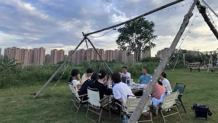 “这里环境太好了,孩子玩得特别开心,大人也能好好放松。”赵先生一边照看着烧烤架上滋滋作响的肉串一边说。家人围坐,享受烧烤和美景。夜幕降临,住进星空帐篷,璀璨星光触手可及,今夜让星辰伴你入眠。