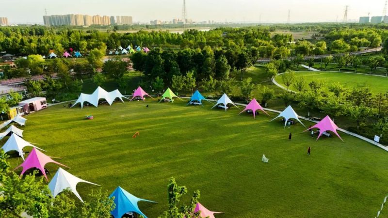 兰池驿·兰池营地紧邻渭河湿地公园。营地内设有亲子课堂、休闲娱乐区、草地露营区等多个功能区,提供帐篷、天幕、树屋等设施,适合亲子活动、团建和研学旅行。营地不定期举办观星、野生厨房等亲子活动,深受家庭游客喜爱。
