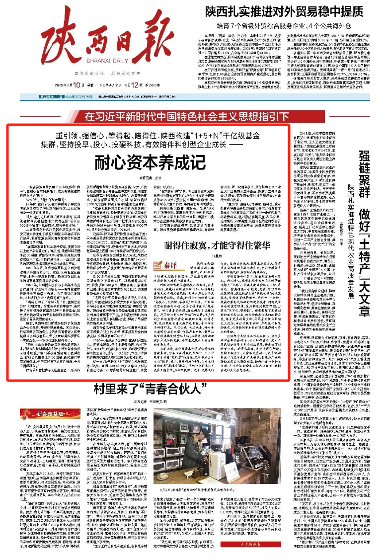 近日,陕西日报头版头条刊发《耐心资本养成记》,关注西咸新区沣西新城入区企业西安锐磁电子科技有限公司在金融“活水”浇灌下,从实验室走向市场。