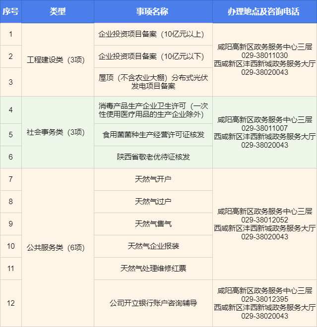 自2025年3月3日(星期一)起,两地企业群众可按照清单事项选择就近办理业务,真诚欢迎广大企业群众前来体验!以下为西咸新区沣西新城与咸阳高新区第二批“同事同标”事项清单(12项)