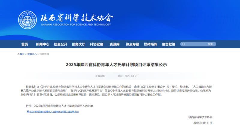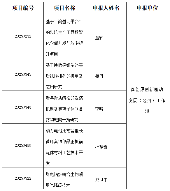 近日,陕西省科学技术协会发布2025年陕西省科协青年人才托举计划项目评审委员会评审结果,100个企事业科协选送项目中的100名青年科技人员入选2025年陕西省科协青年人才托举计划。其中,泾河新城推荐申报的5名科技青年人才成功入选。
