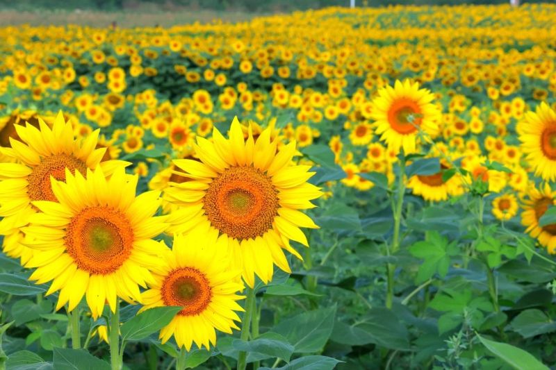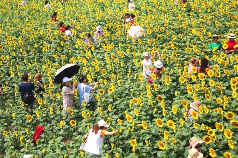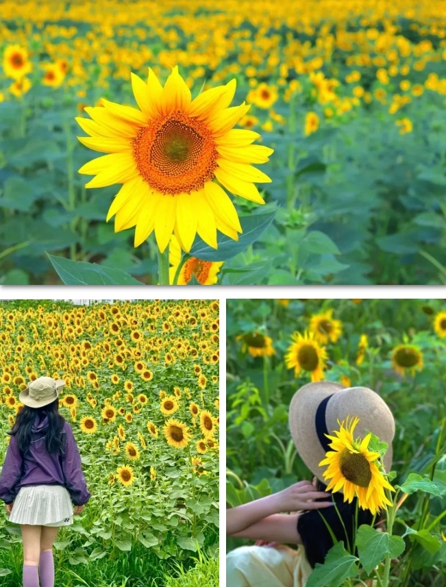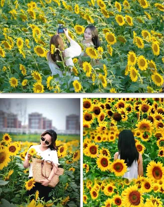 向日葵盛花期约20-50天,目前正值最佳观赏期,建议错峰打卡,上午10点前或下午4点后观赏效果最佳。