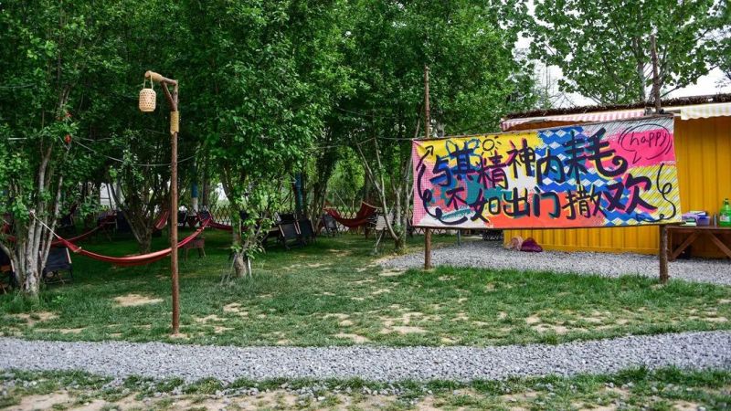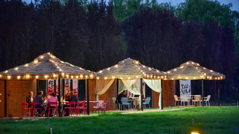 位于渭水河畔,2.4万平方米的大草坪上,有天幕、帐篷、篝火。自助套餐里牛肉串、鸡脆骨、鱿鱼须等33种荤素任选。夜晚时分,朋友们围坐在篝火旁,唱歌、聊天、看星星,虫鸣为伴、晚风作陪,嘴里的烤肉都变得更好吃了。