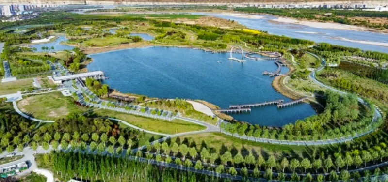 藏在秦汉新城18公里黄金岸线西段的渭河湖泊湿地公园,是新区滨水休闲的“颜值”代表:29.3万平方米生态水面、57.1万平方米林地草坪,14座亲水栈道、观景平台,满满“滨海度假”的既视感。