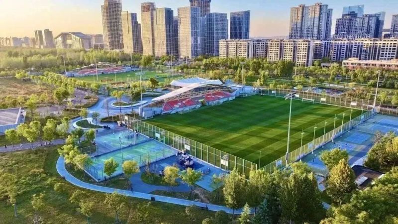 除此之外,还有1块八人制、2块五人制人造草球场,不管是专业集训还是业余约赛,都能找到适配场地。更贴心的是,公园还配了篮球、网球场和健身步道,看完球赛不用转场,就地就能开启篮球对抗、网球挥拍,运动节奏无缝衔接。