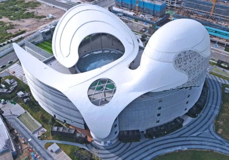 西咸新区首个大型综合体育场馆——泾河新城体育中心,5万平方米建筑面积,外观灵感来自泾河“水润生贝”,还获评“陕西省示范型体育服务综合体”,颜值与实力并存。
