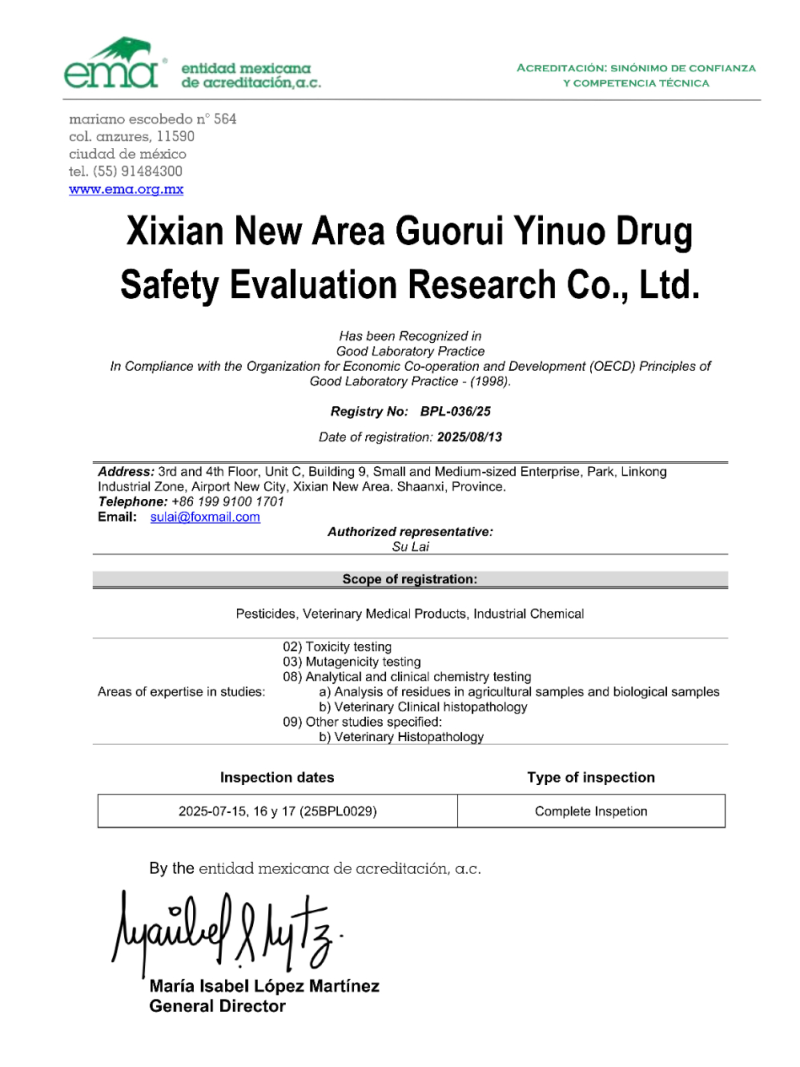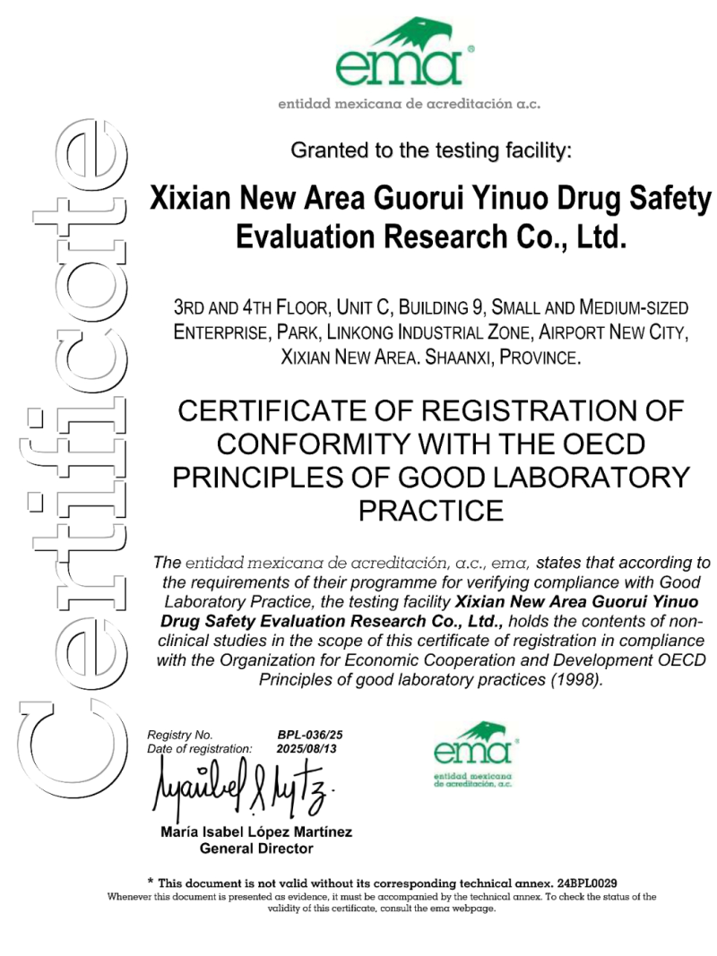 国睿一诺此次获得的OECD GLP认证,为企业产品国际注册提供关键支撑。