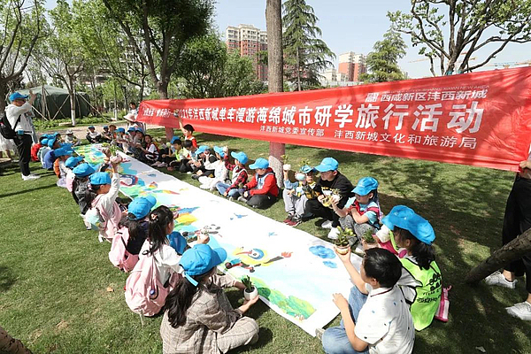 西咸新区赵纳女士说:“五一期间各景点人都很多,就想带孩子近郊游。海绵城市研学旅行,陪着孩子一起骑行、踏青、画画,还了解海绵城市知识,寓教于乐!”