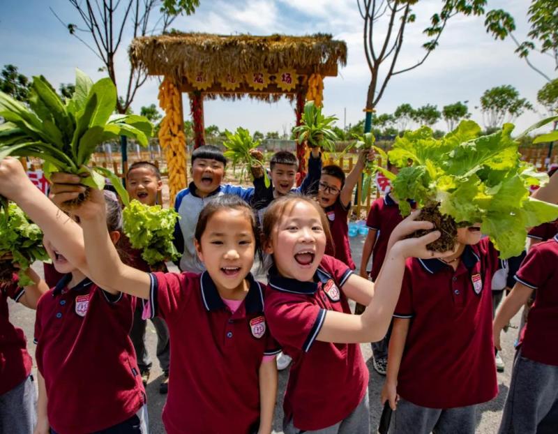 “离开劳动,就不可能有真正的教育”,在泾河新城第二学校“幸福农场”,摄影记者们被小朋友们采摘蔬菜的场景所吸引,小朋友在农场里一边采摘着自己班级种植的瓜果蔬菜,一边用英语与老师交流,这是泾河第二学校所提倡的沉浸式英语教学方式,旨在让学生把英语口语运用到田园课堂里。