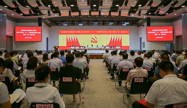 7月9日,沣西新城召开学习贯彻习近平总书记“七一”重要讲话动员大会暨“两优一先”表彰大会。沣西新城党委书记、管委会主任刘宇斌出席并讲话,新城全体班子成员参加。