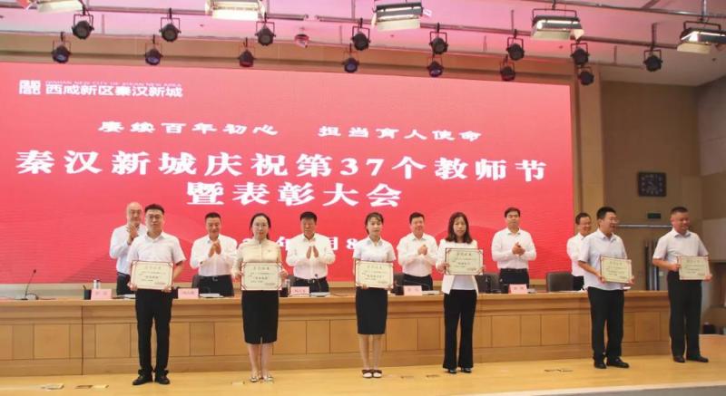 三尺讲台一亩田,种桃种李种春风。9月8日,西咸新区秦汉新城召开庆祝第37个教师节暨表彰大会,对在2020—2021学年度教育教学工作中取得优异成绩的秦汉中学等36个先进集体、王青莎等98名先进个人进行了表彰奖励。新城党委书记、管委会主任杨占文出席大会并讲话。新城党委管委会班子成员、集团公司党委书记参加大会。会议由新城党委委员、纪委书记任涛主持。