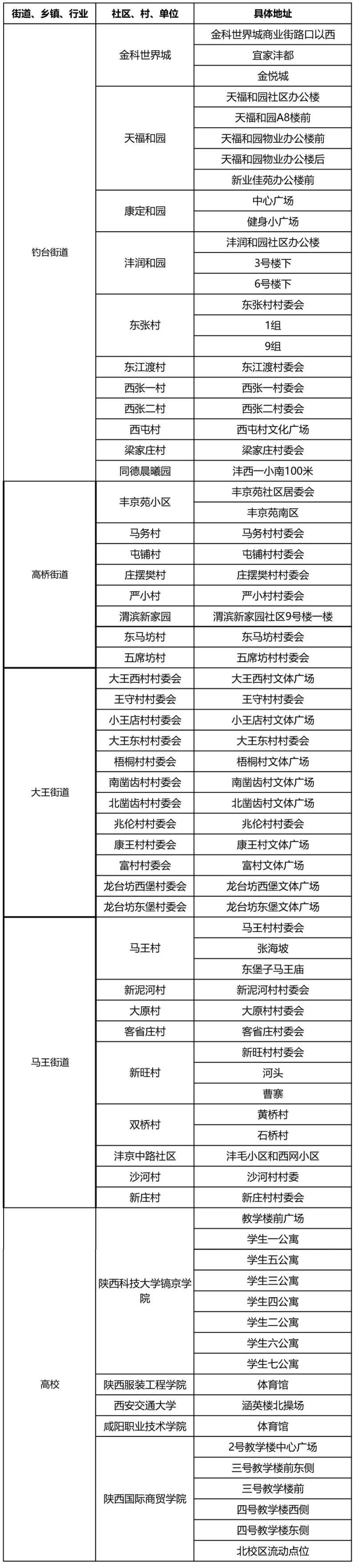 核酸检测采样点及具体时间安排以各街道办事处、社区(村)、单位通知为准,根据检测需求可能进行调整,请居民群众留意街道、社区(村)通知,或拨打新城咨询服务电话029-32086391了解最新采样点信息。