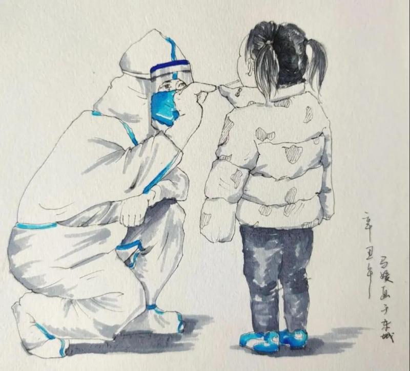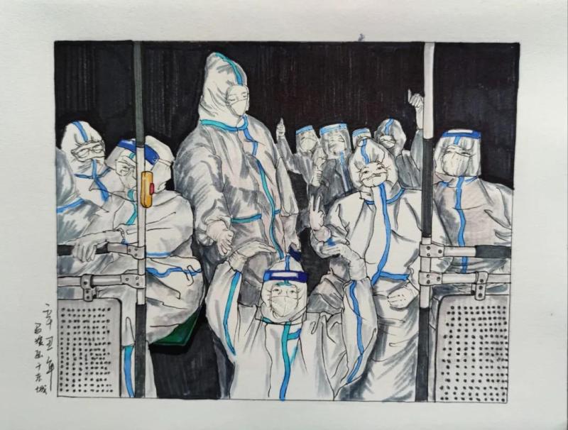 “艺术来源于生活,那些感动人心的瞬间,值得以各种各样的方式被更多人看到。”马媛感慨道,通过这些天的绘画,让她也有了一种同一线工作人员并肩抗疫的荣誉感。