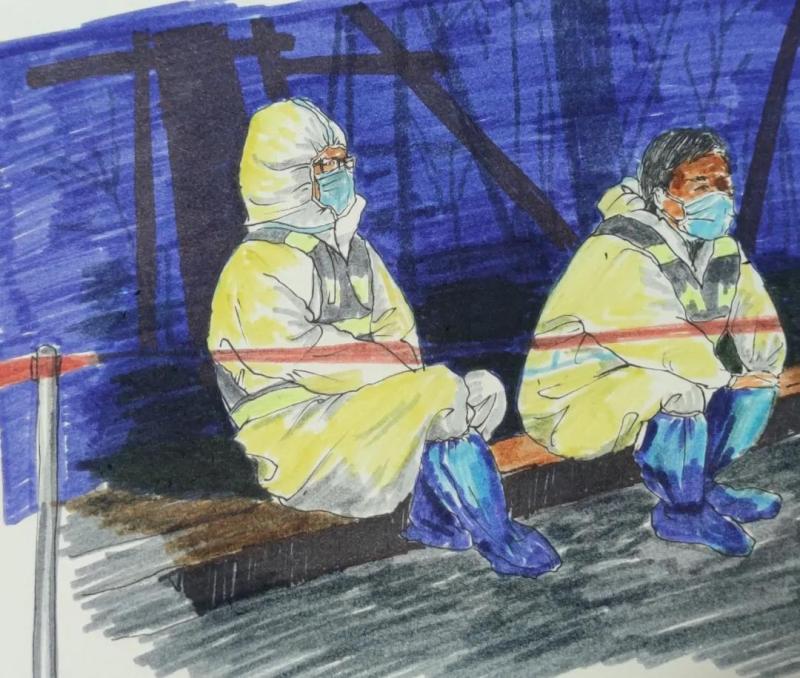“虽然我隔离在家没办法去一线支援防疫工作,但能用手中地画笔将这些感动的瞬间记录下来,也算是为抗击疫情做出一点微薄贡献吧!”有了这样的想法后,但凡涉及辖区防疫工作的照片、视频,她都反复观看、揣摩。