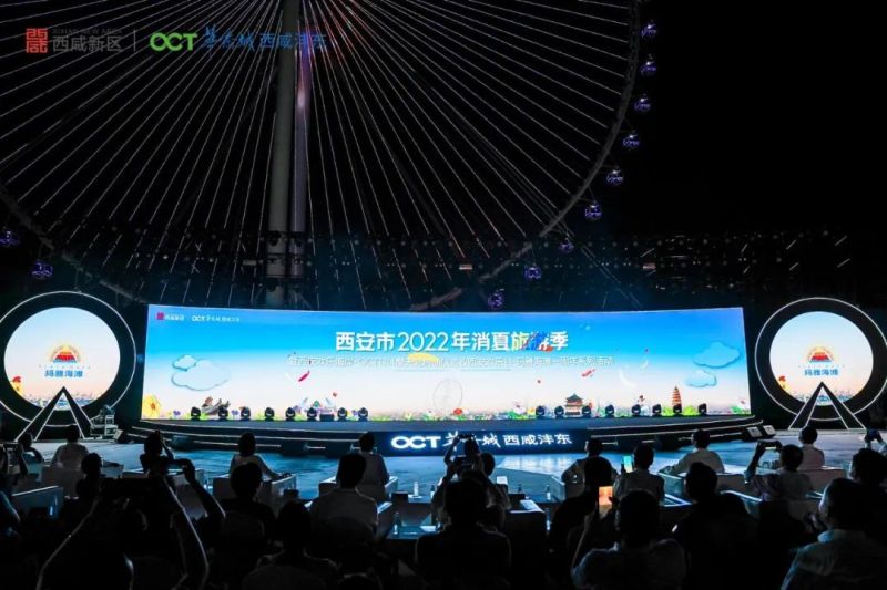 6月17日晚,2022年西安消夏旅游季暨欢乐海岸·OCT1314摩天轮启动仪式在沣东华侨城欢乐海岸摩天轮广场举办,在现场观众和游客的见证下,西北最高摩天轮在光影中被点亮,也标志着西安市消夏旅游季活动正式开启。