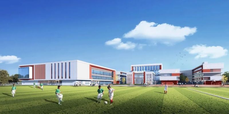 学校位于沣东新城镐京片区镐京大道以北,复兴二路以西,复兴三路以东。项目总占地约106亩。建成后将容纳64个教学班,满足3150名中学生就读需求。学校坚持一流建设标准,规划有教学区、运动区和生活区,其中包含报告厅、图书馆、实验楼等特色场馆,运动区配有400米标准操场与50米室内标准泳池等体育设施。值得一提的是,学校的游泳池、停车场、操场等设施建成后可实现校际共享,面向社会开放。