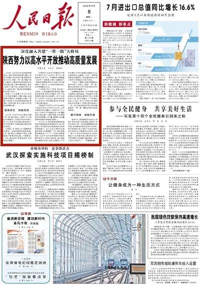 据此,《人民日报》文章指出:“西安国际航空枢纽、上合组织农业技术交流培训示范基地、丝绸之路大学联盟等成为陕西对外开放的新名片。”