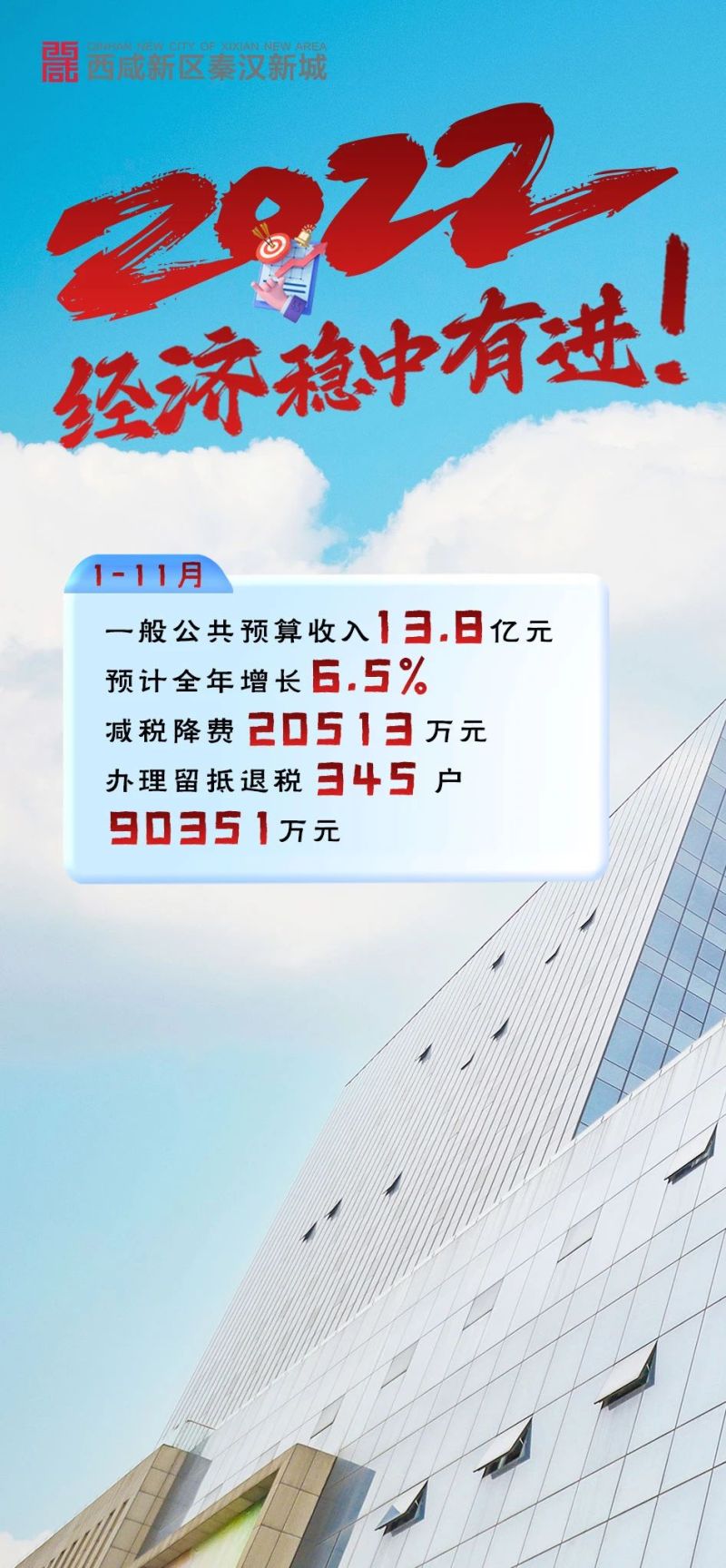 即将过去的2022年,西咸新区秦汉新城直面困难挑战、勇开发展新局,聚焦打造“三个带”整体发展思路,大力实施“三大战略”,以集中布局、片区开发、园区承载为原则,狠抓招商引资和项目建设,加速产业布局和升级突破,建立经济指标协调调度工作机制,统筹推进稳增长、促改革、防风险等工作,经济运行稳中有进。