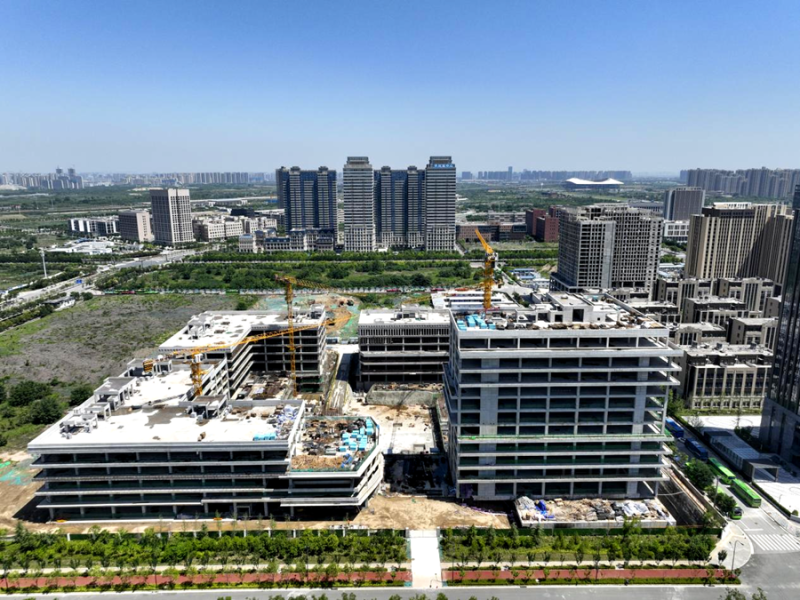 软通动力西北总部及产业互联网基地位于沣东新城科统区,项目占地47.95亩,总建筑面积约12.5万平方米,建设内容包括总部大厦、研发办公楼、展示中心等8栋建筑单体。截至目前,该项目1号楼、8号楼主体结构已封顶,6号楼二次结构完成80%。