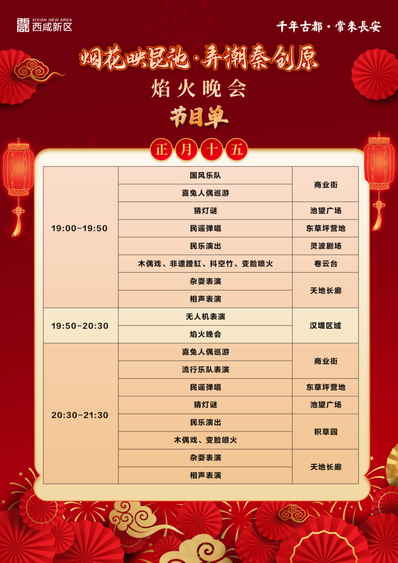 烟花映昆池弄潮秦创原,2月5日,西咸新区元宵节焰火晚会与您相约昆明池畔,美丽的烟花精彩的节目陪您共渡元宵佳节。