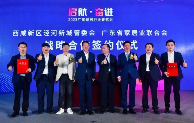 3月27 日,第十九届中国家居产业高质量发展峰会暨2023广东家居行业春茗会在广州举行。会上,陕西省西咸新区泾河新城与广东省家居业联合会签署战略合作协议。依照协议,广东省家居业联合会的“国货行天下”总部基地将落户泾河新城原点新城。
