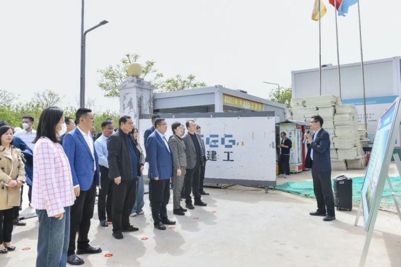 在泾河新城国际全封闭式恒温贸易中心项目现场,施工人员正有序忙碌,物料运输车辆往来穿梭。观摩组一行不仅看工程进度、施工管理、安全生产等情况,还认真询问企业遇到的困难和问题,现场协调部署,帮助企业解决实际困难。