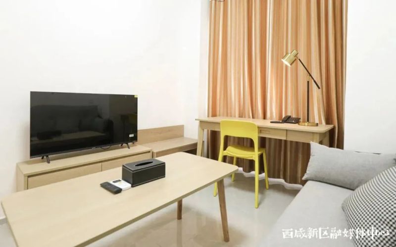 人才公寓以现代风格设计为主,色系清新、层次感和空间立体感十足,打造适合居住者的理想空间,精心摆放的软装家具、品牌家电、艺术画等,让整个房间看上去更加温馨舒适,氛围感拉满。