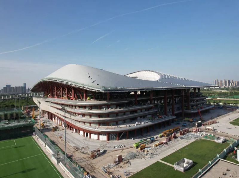 目前,项目全部建筑工程施工已基本完成,幕墙和泛光设备安装、精装区施工、体育工艺设备安装、室外景观广场等工程正在快速收尾,预计今年三季度完成整体调试测试验收。