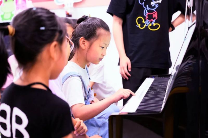 “今天的钢琴课太有趣了,虽然平时老师会教我们弹钢琴,但只能在学校,没想到,小区楼下竟然也有钢琴室,而且还能免费学习弹钢琴。暑假期间,我想天天来这学钢琴……”刚刚学会弹《小星星》的王子怡小朋友开心地说道。