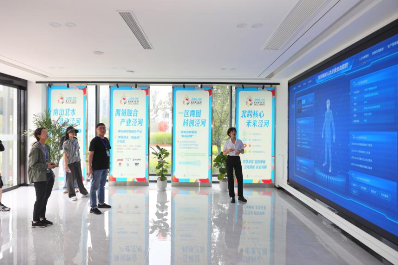 走进泾河新城秦创原(泾河)科技人才·企业服务中心,新颖外观令人眼前一亮,缓缓步入大厅,灯光柔和舒适,环境温馨整洁。“我们配备了专业服务人员及服务设备,能充分满足区域内各类人才的生产生活需要。”讲解员一边展示泾河新城人才企业生态指数,一边向记者们介绍道。