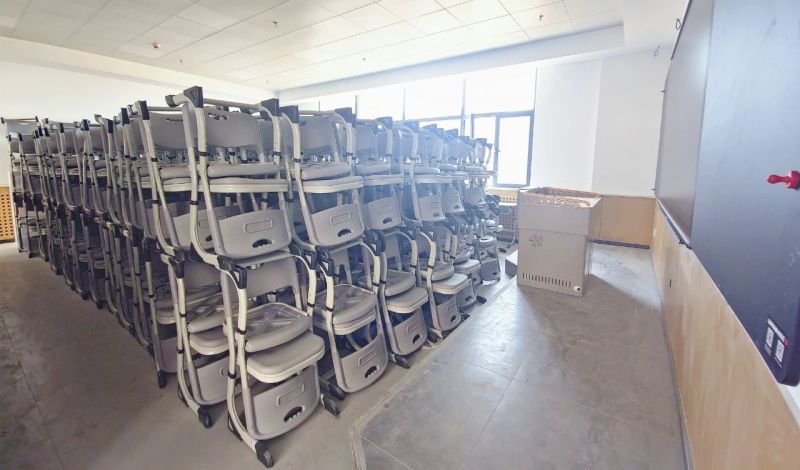 针对家长担忧的环境安全问题,屈龙飞表示,项目部严把桌椅板凳等孩子密切接触的软装教学用品质量关,在确保正规厂家生产、通风晾晒到位、各项指标全部达标后才搬运进场。目前,教学综合楼已到位桌椅540套,剩余部分将在项目交付前布置完成。