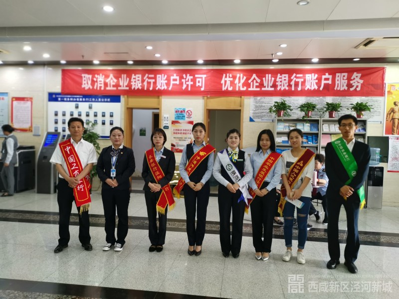 为了确保此项工作稳妥推进,5月20日上午,泾河新城金融办联合人行泾阳县支行组织辖区各金融机构,在泾河新城政务服务大厅开展取消企业银行账户许可证宣传活动。