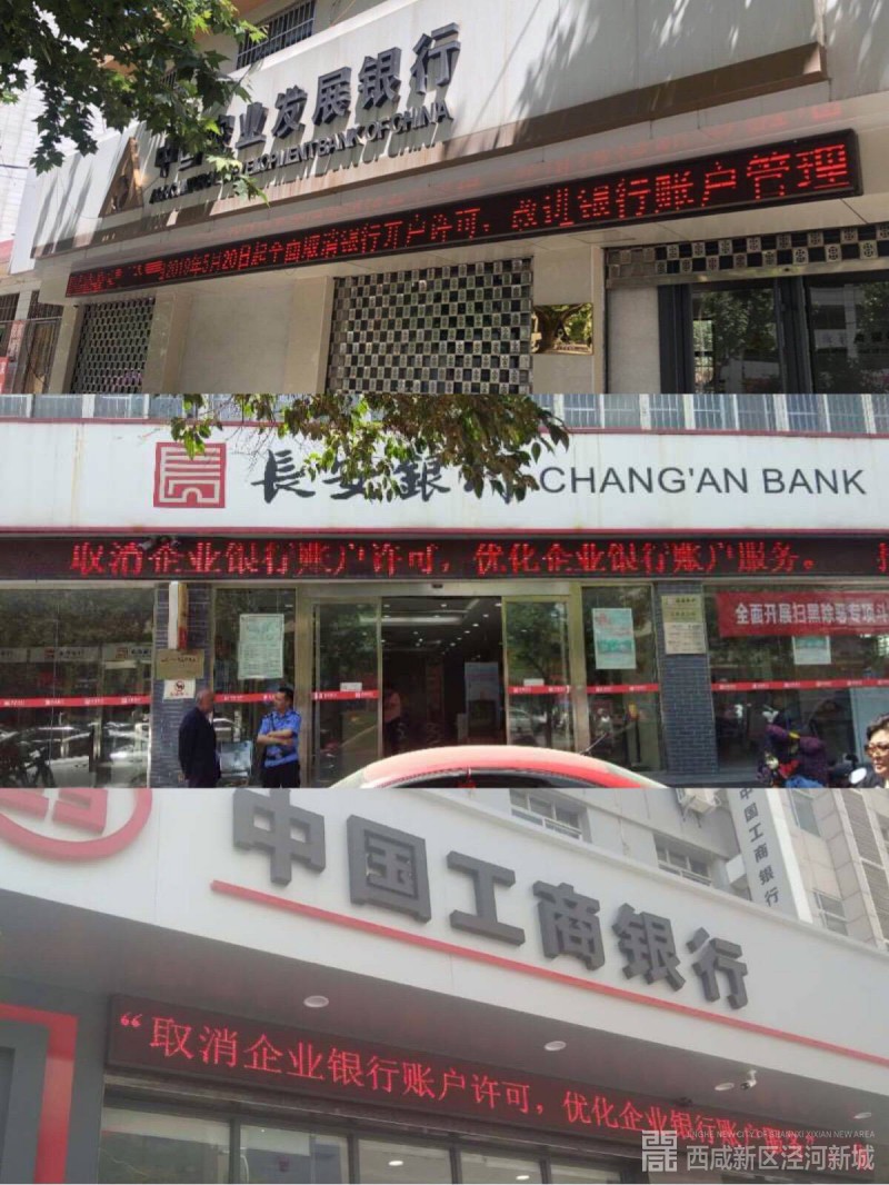 此外,人行泾阳支行门口、办公楼醒目处也张贴了取消企业开户许可的公告。辖区各金融机构所有网点也在积极开展同步宣传,充分利用LED显示屏、醒目处张贴海报,公告、现场讲解等方式持续开展取消企业银行账户许可证的普及工作,进一步加大此次宣传取消企业银行账户许可证工作的覆盖面。