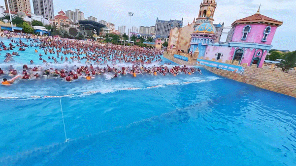 7500平方米的伊莎贝拉海滩造浪池,3.5米高的真空造浪超刺激,能体验“冲浪”的快感;怕水的小朋友就去玩温柔的风洞造浪,在浅水区感受浪花轻抚,安全又好玩。