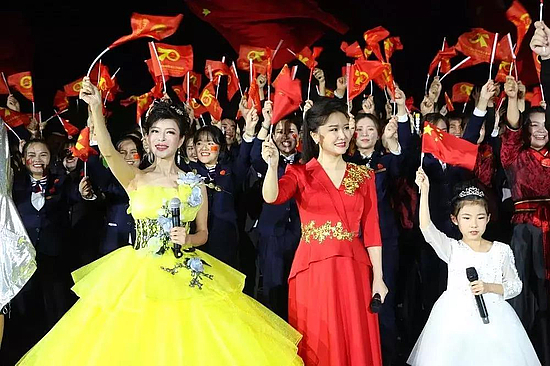 昆明池·七夕公园举办的红色主旋律国庆音乐会、魔幻惊天秀、鸿雁迎宾、“我和我的祖国”快闪等节庆活动,点燃现场游客的爱国热情,游客们同声高歌,表达对祖国的赤子之情,营造了欢乐祥和、喜庆热烈的国庆氛围。