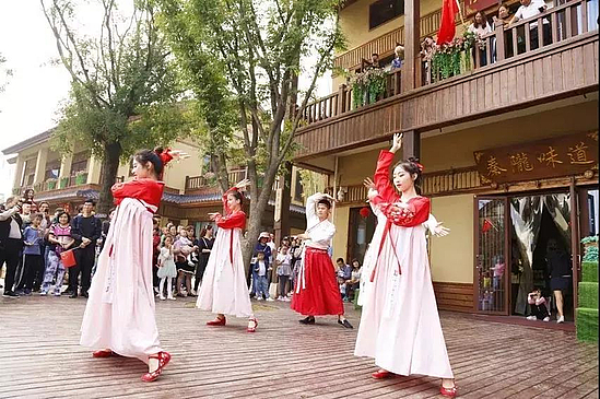 在五福广场、百福广场等区域进行了巡游表演,演员们穿着古装在表演中和游客互动,带大家体验一次穿越古代的快感;街头表演、充气小丑、高跷小丑、大熊猫、变形金刚……让大家随时和街头表演者一起互动;火爆网络的古风舞蹈《丽人行》也在茯茶镇上演,绝美的舞姿和典雅的氛围让大家近距离感受到了何谓“舞低杨柳楼心月,歌尽桃花扇底风”。