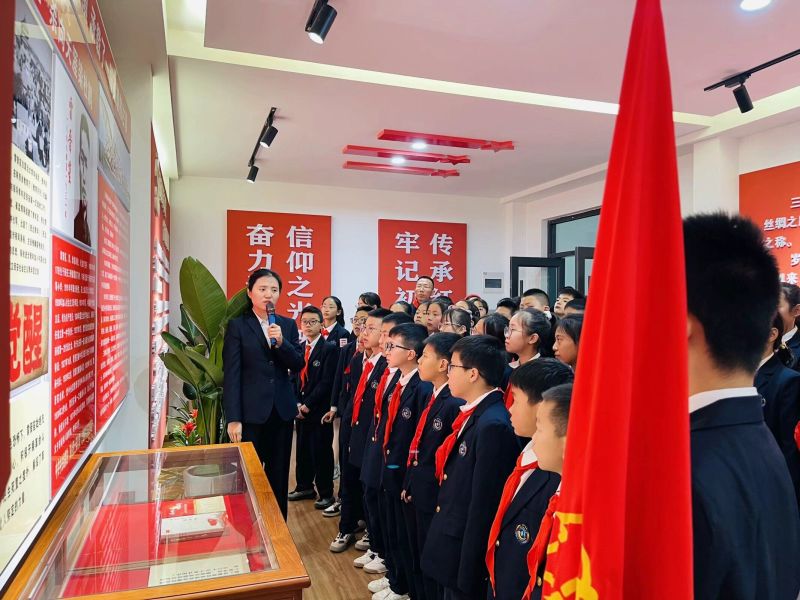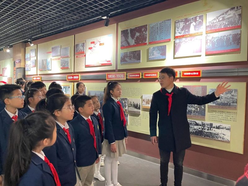 纪念馆里,老师向队员宣讲英烈事迹,让队员们感受到他们英勇无畏、坚定不移的精神力量。