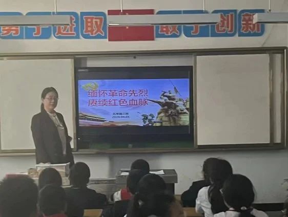 开展主题班队会,讲述黄继光、邱少云、刘胡兰、董存瑞等革命先烈的故事,鼓励同学们以先烈为榜样,用勤劳和智慧传承红色基因。