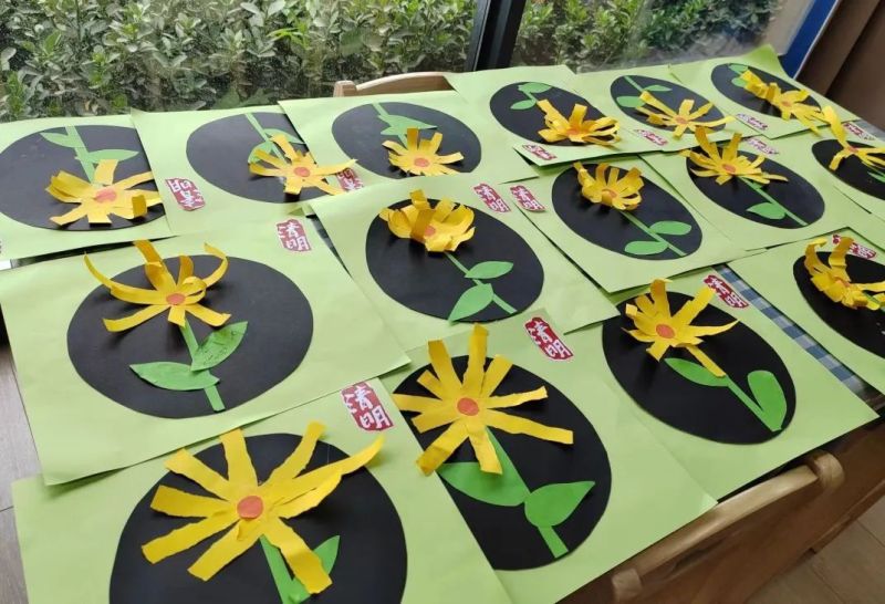 西咸新区空港第二幼儿园的孩子们用灵巧的小手绘制一朵朵菊花,寄托对亲人的思念和对英雄烈士的缅怀。
