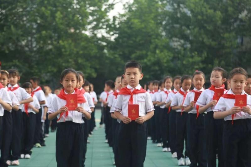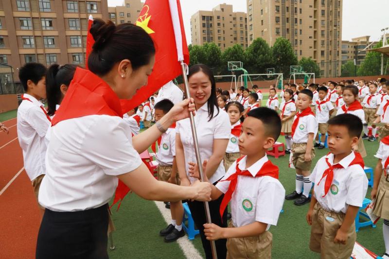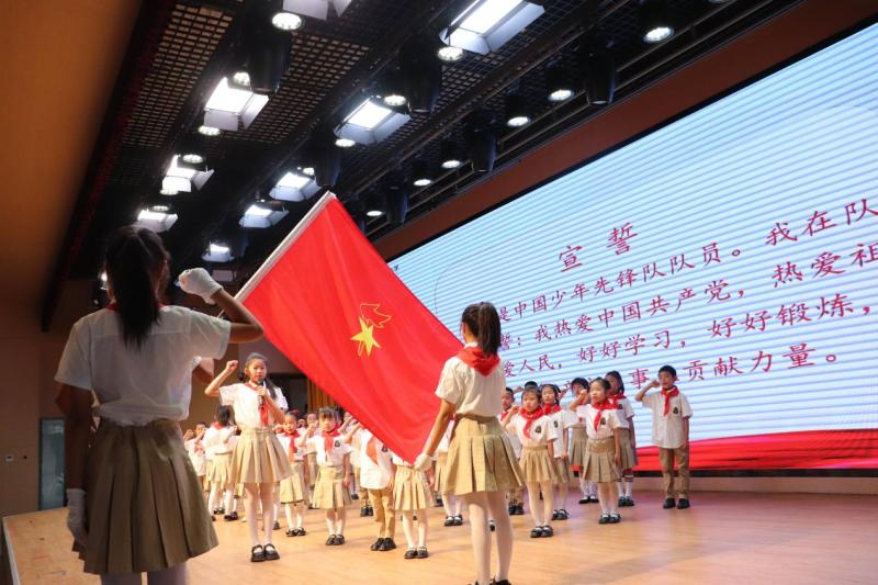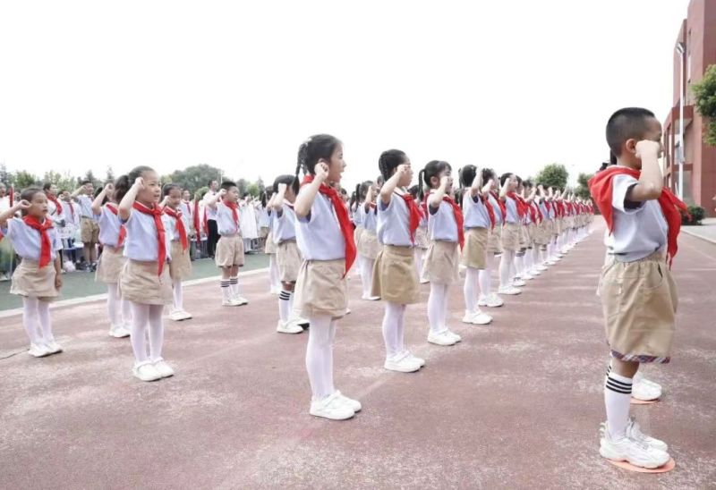 队旗飘飘,融入生命和血液;星星火炬,点燃信念和理想。各学校举行一年级新队员入队仪式,火红的队旗下,高年级的优秀队员们为新队员戴上鲜艳的红领巾,这是一种传承,传递的是优良的传统,是良好的校风。