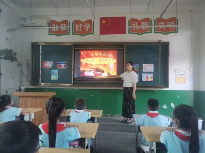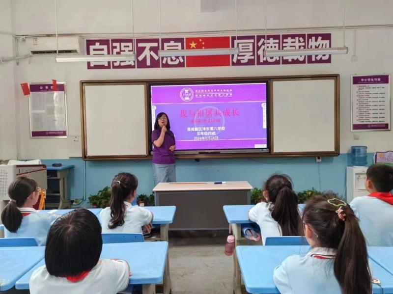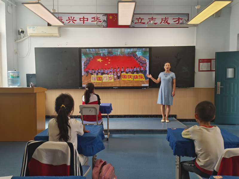 学生聆听老师讲述国庆节的相关知识,深入了解新中国的光辉历程,增强爱国情感,弘扬民族精神。