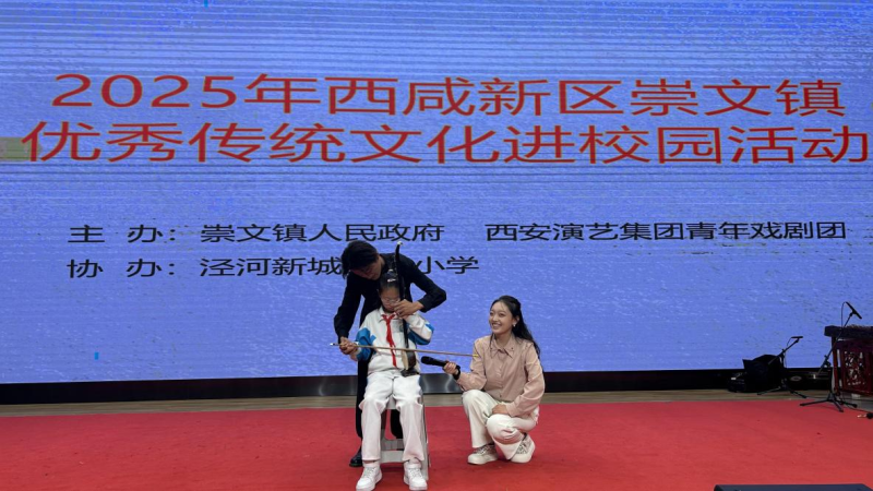 为弘扬和传承中华优秀传统文化,9月26日,崇文镇人民政府联合西演·青年团走进泾河新城第四小学,开展了一场意义非凡的“秦腔艺术进校园”主题活动。这一活动犹如一股清泉,滋润了校园的文化土壤,为师生们带来了一场别开生面的文化盛宴。