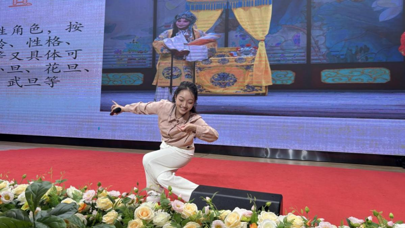 精彩的互动过后,两场经典秦腔折子戏接连上演。在《挂画》中,韩佳诺饰演的耶律含嫣娇俏灵动,一颦一笑尽显少女情态;张涵瑞饰演的丫鬟活泼机敏,与主角配合默契;申一鸣饰演的花云英气十足,三人用细腻的表演将剧情演绎得淋漓尽致。而《顶灯》一剧里,宋政阳饰演的胡仑头顶油灯,在桌椅间灵活穿梭,哪怕做着高难度动作,灯油也丝毫不洒;贾婉婷饰演的胡妻泼辣生动,两人的对手戏诙谐有趣,既展现了秦腔的表演功力,又让同学们在欢笑中领略传统戏剧的韵味。